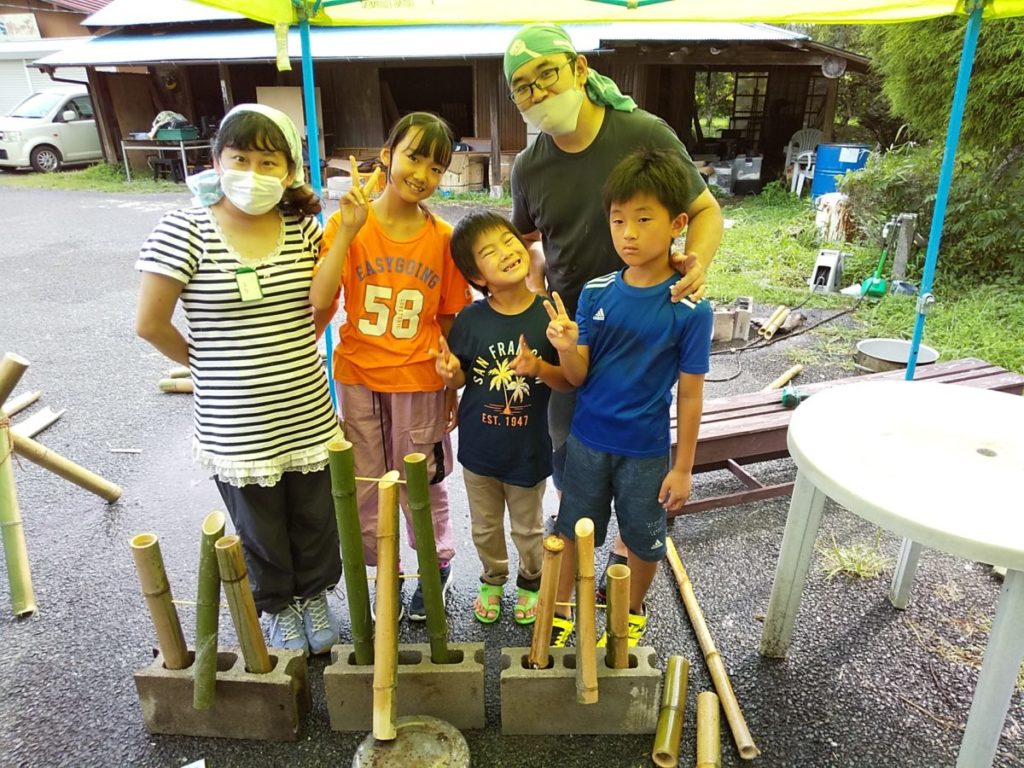 《星空スクール夏休みクラス:9日目》流しそうめん台とシシオドシを竹で作る